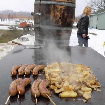 Food, wine, and tastings extra. Traditional fare with a Fox Run twist includes our 'On a Roll' Cafe special with house-made sausage and custom fixings, Pan Fried Potatoes, Roasted Apples & Onions, Potato Chowder, Mulled Wine & Hot Chocolate, and Chocolate Chip Cookie S'mores.